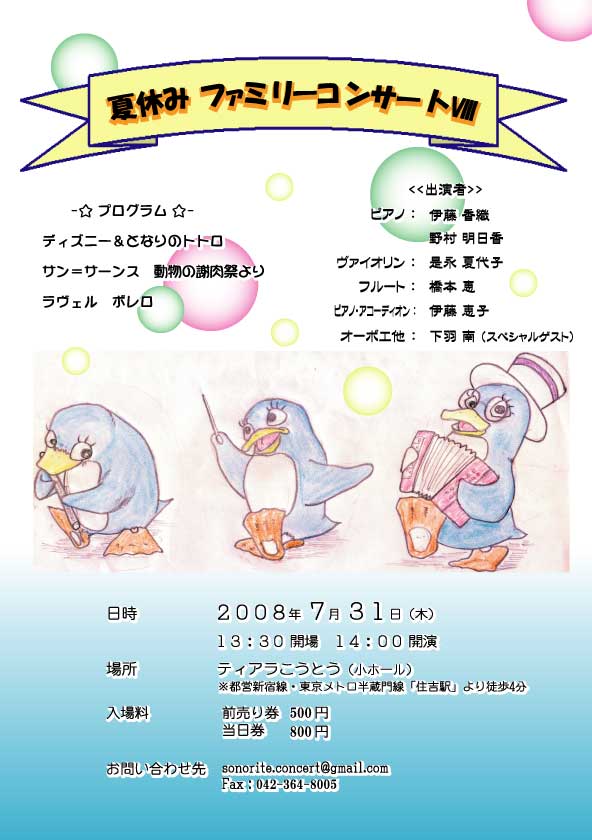 Piano:伊藤恵子 Ob/etc.:MINAMI、Vn:Soejima Masayo |