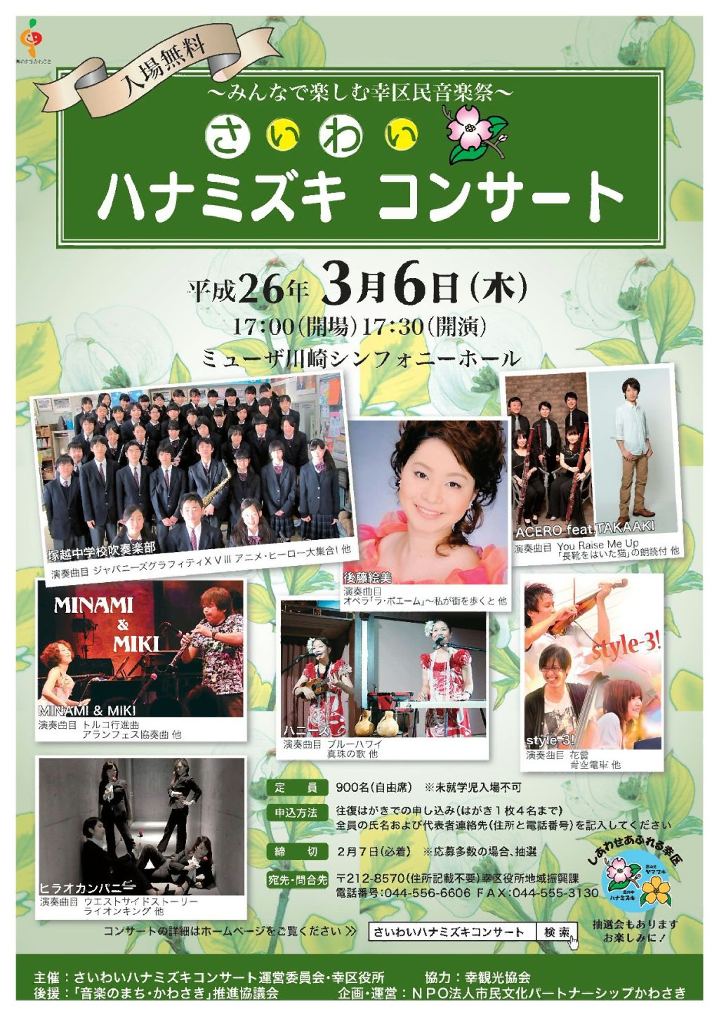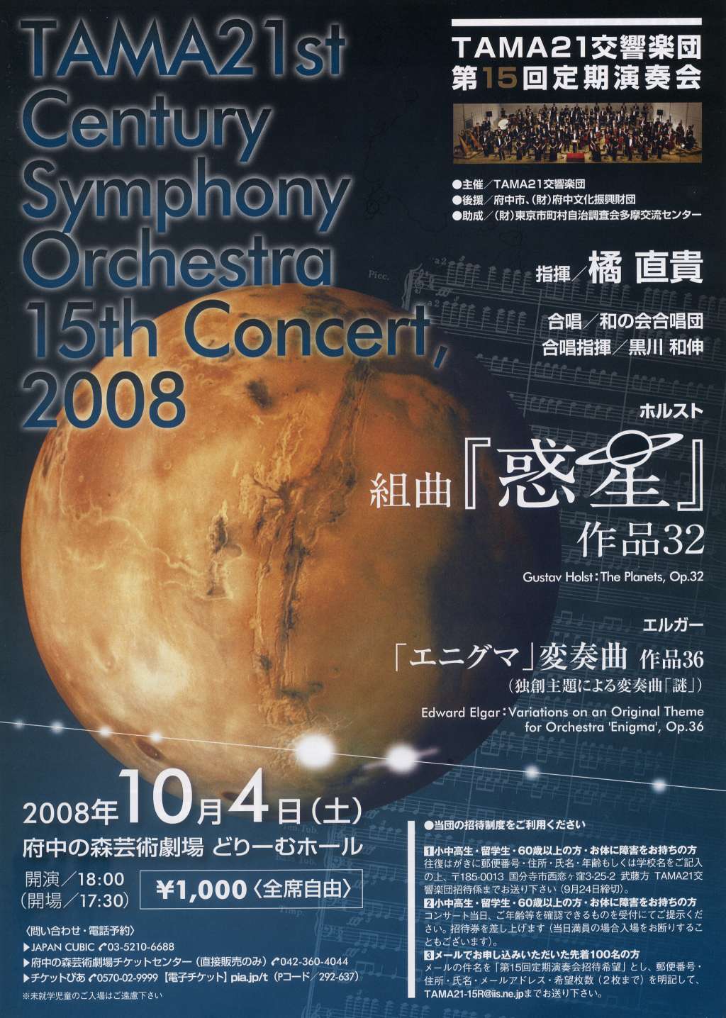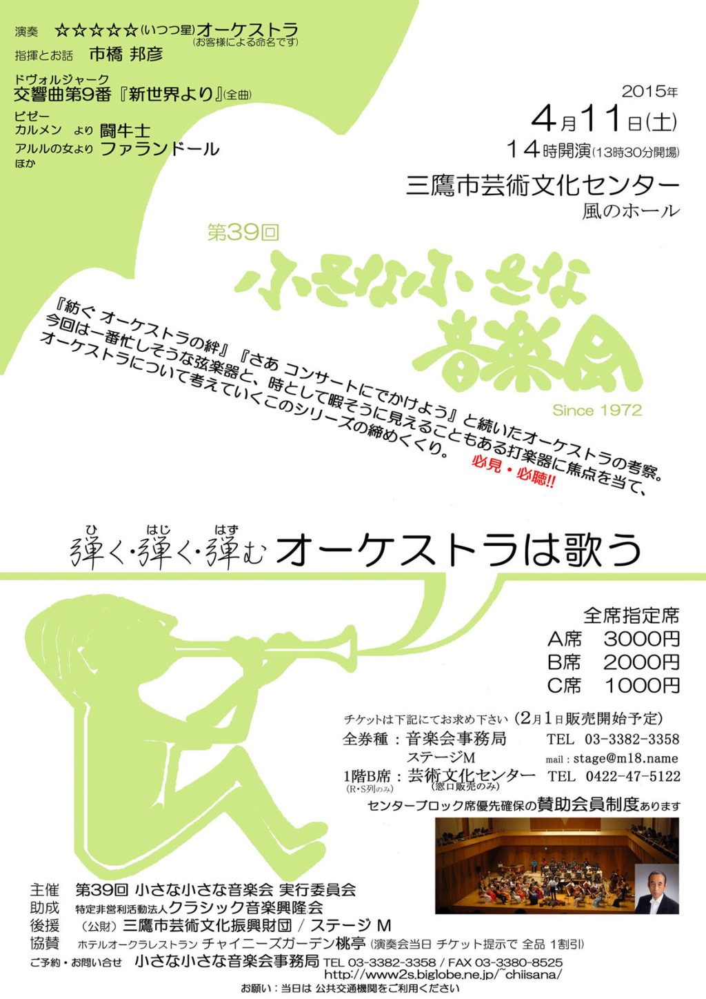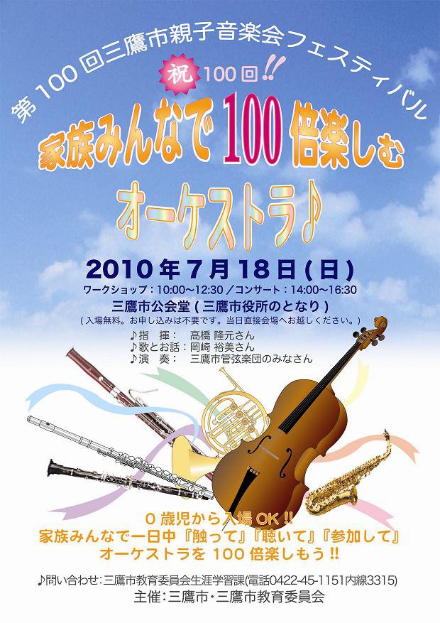 指揮:山田和樹 歌と司会:倉橋宇多子 企画:西川美緒 管弦楽:三鷹市管弦楽団 サックスで出演 |