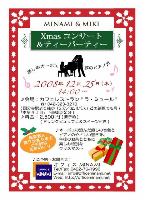 | 2005/12/17(土) | 三鷹中央リハケアセンターX'massコンサート | |