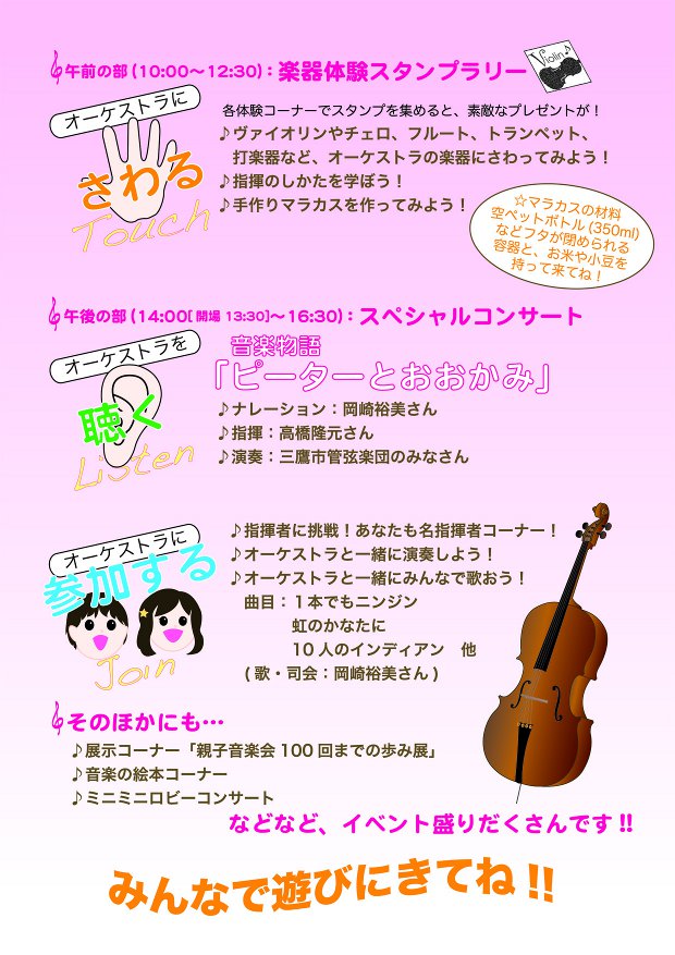 三鷹市第91回親子音楽会 会場:三鷹市公会堂 |
