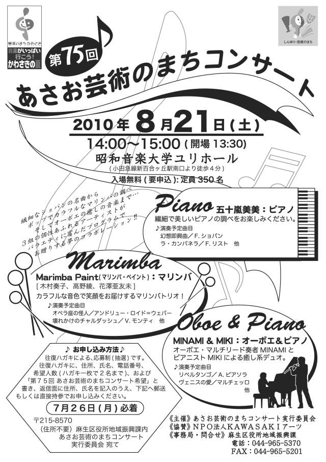 あさお芸術のまちコンサート ~夏のハーモニー 麻生市民館ホール |