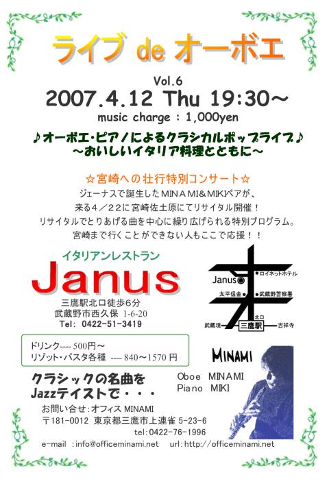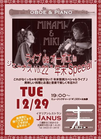 ライブ de オーボエ イタリアンレストラン 『ジェーナス』 |